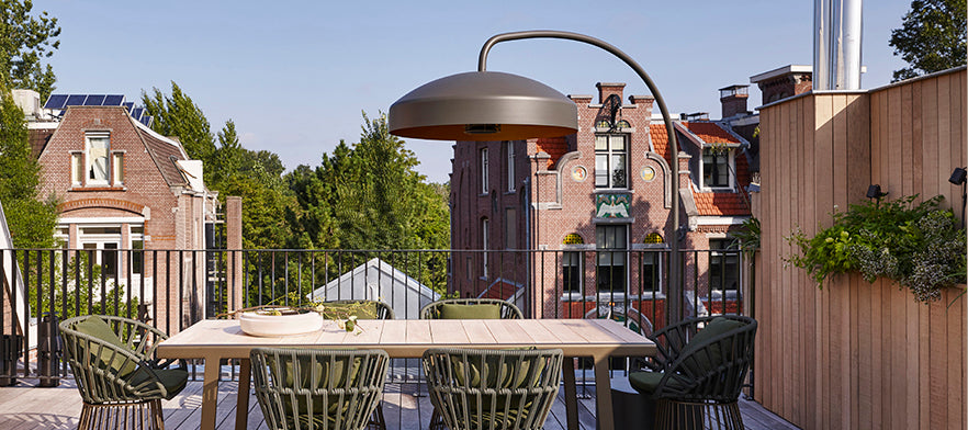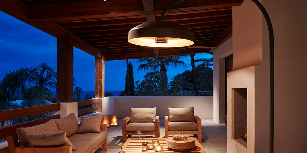 最大5メートルの到達距離。赤く光ることなく心地よい暖かさで、6人掛けのテーブルに最適です。